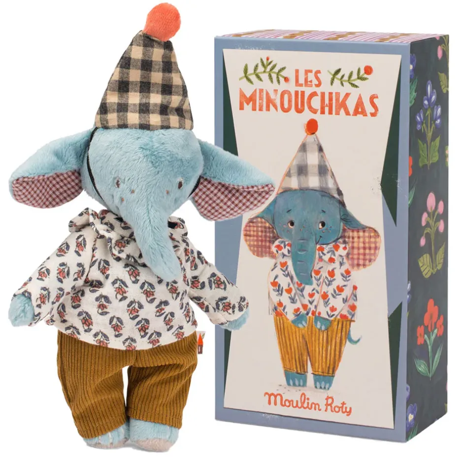 Like little works of art – Les Minouchkas exquisite fabric animals from Moulin Roty, each one presented in a beautifully decorated gift box.
