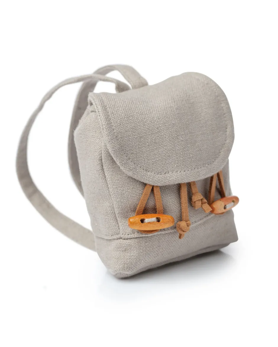 He can be dressed and undressed in his simple natural linen outfit, and comes with a proper little backpack – perfect for storing treasures and keepsakes.
