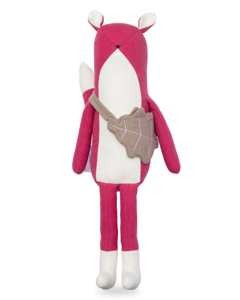 A charming cotton and linen soft toy fox with her own linen acorn bag – all ready for woodland adventures!
