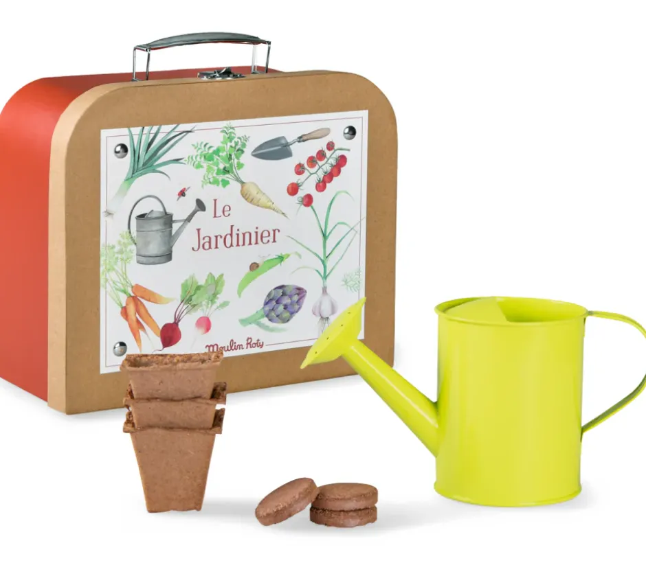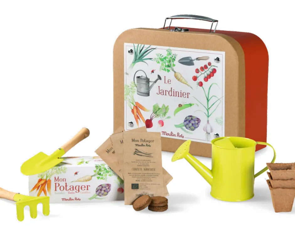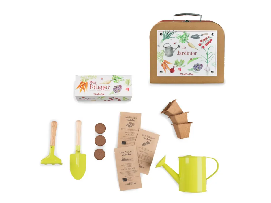 A classic Moulin Roty gift set with colourful veggie illustrations on the box.