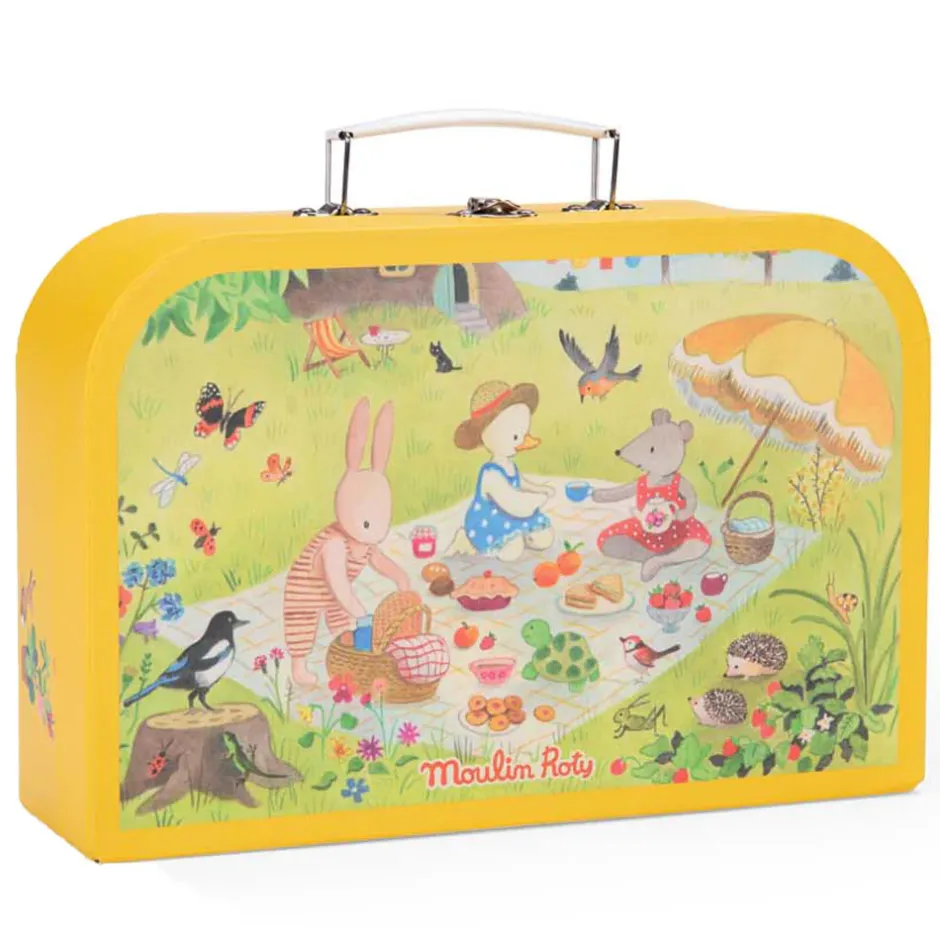 A lovely metal tea set in a suitcase from Moulin Roty’s Grand Family toy collection.