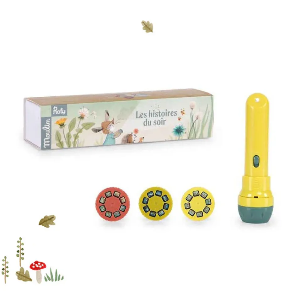Contain one torch and three story discs, each with eight slides.
