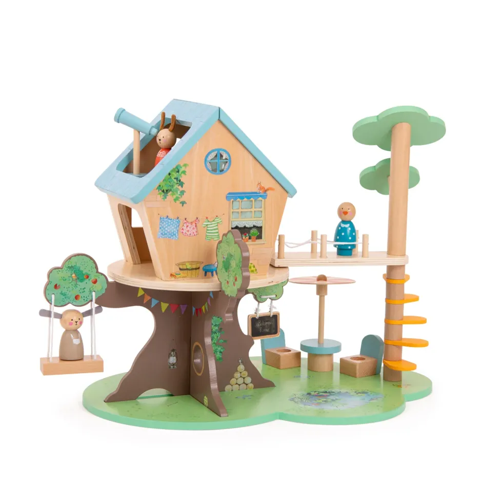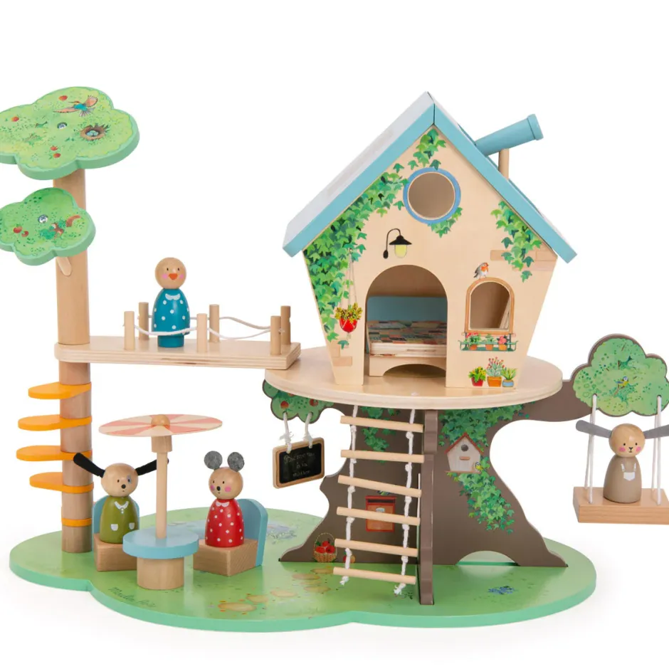 Beautiful wooden treehouse and furniture play set from Moulin Roty’s Grand Family range of toys.