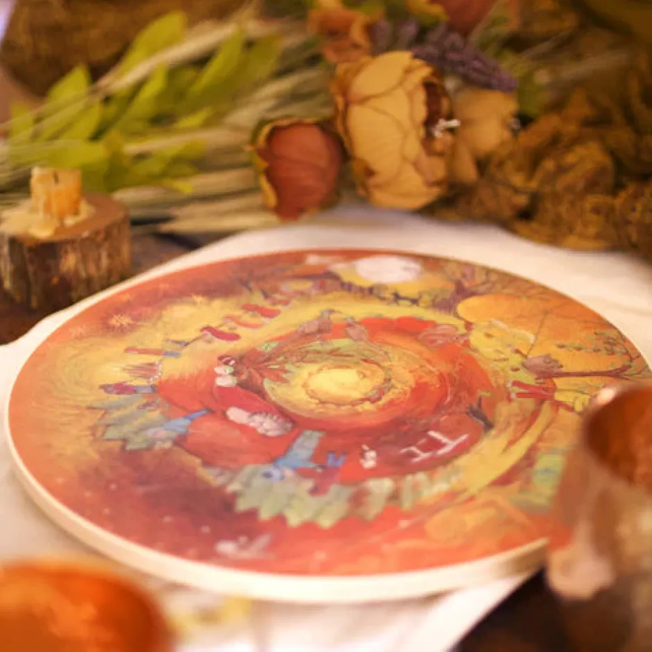 The autumn wheel is full of cosy rich illustration, including squirrels, pheasants and images to take us into Bonfire Night and Hallowe’en.