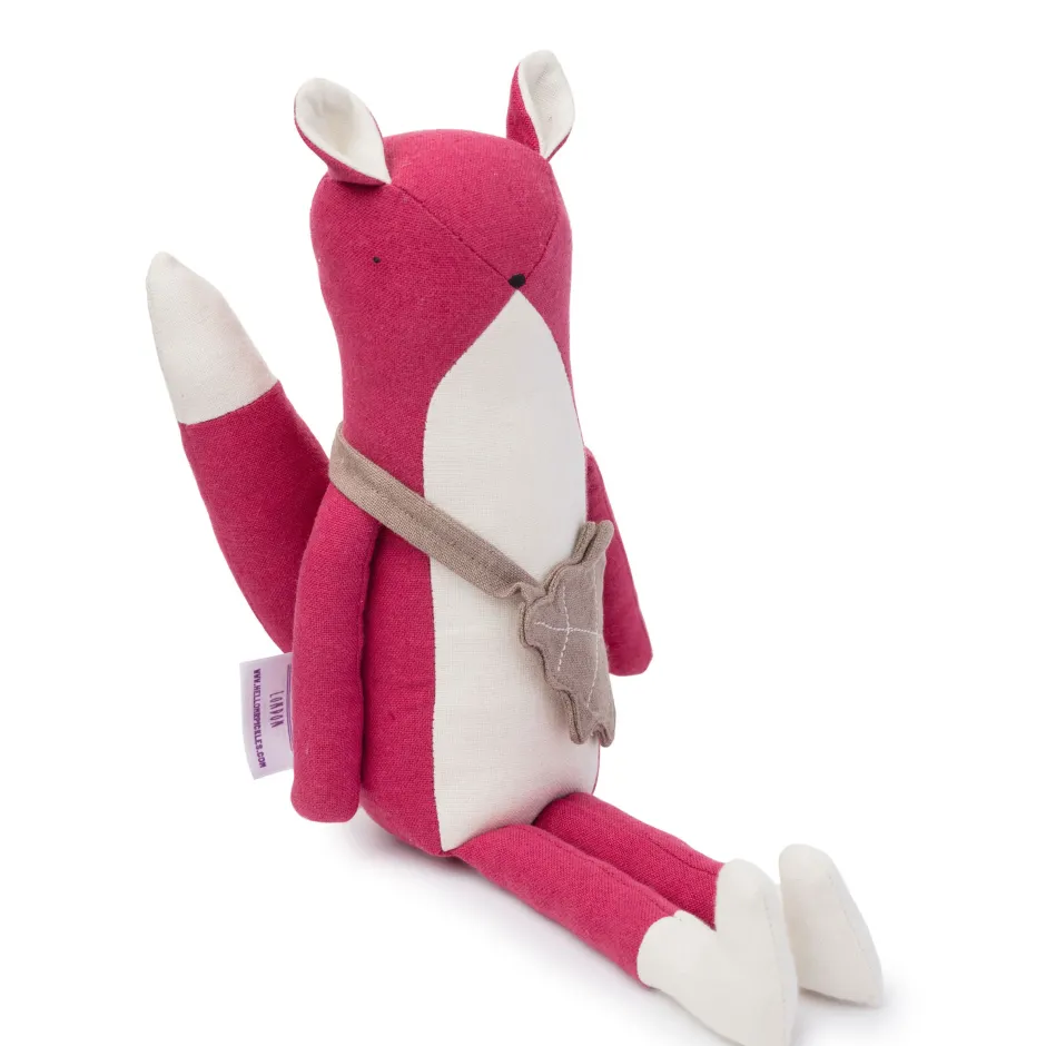 A charming cotton and linen soft toy fox with her own linen acorn bag – all ready for woodland adventures!