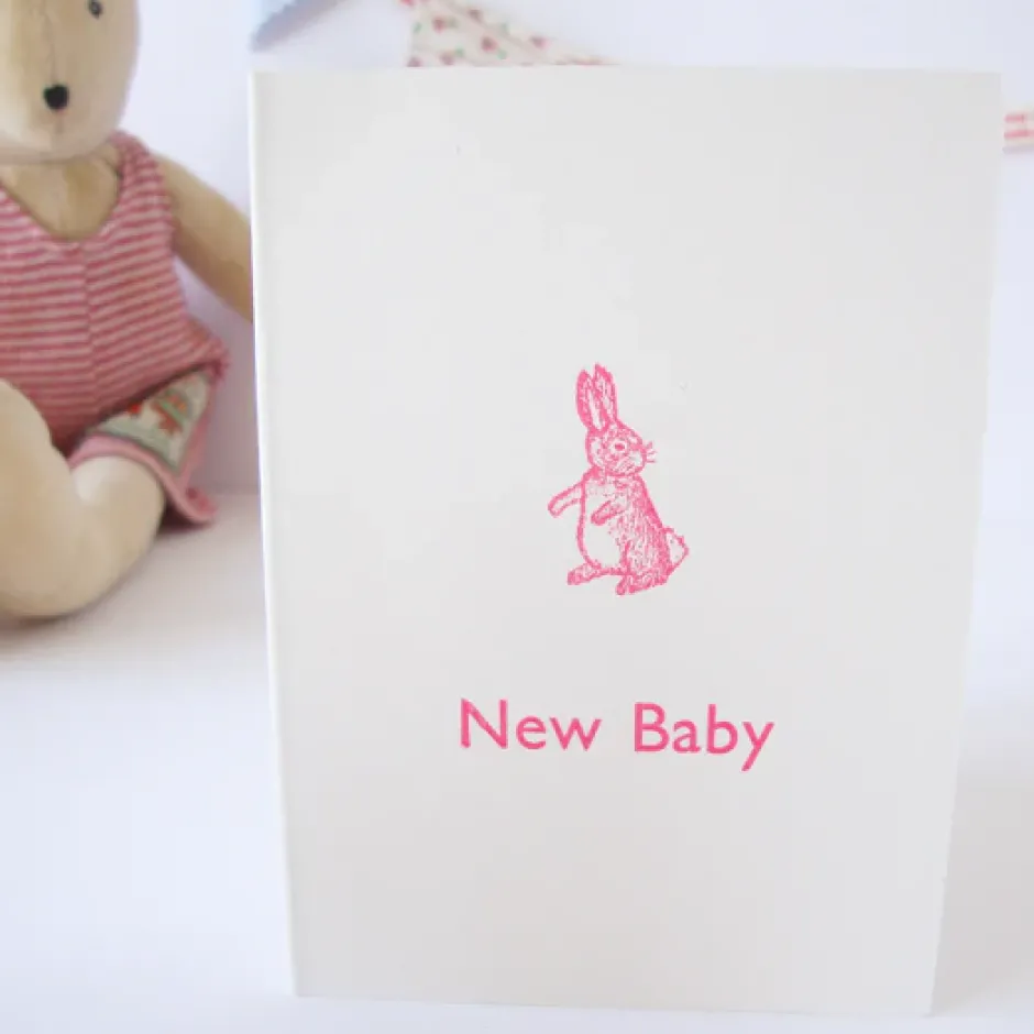 The bunny is printed on an antique letterpress printer from an engraving I had made from my own line drawing.