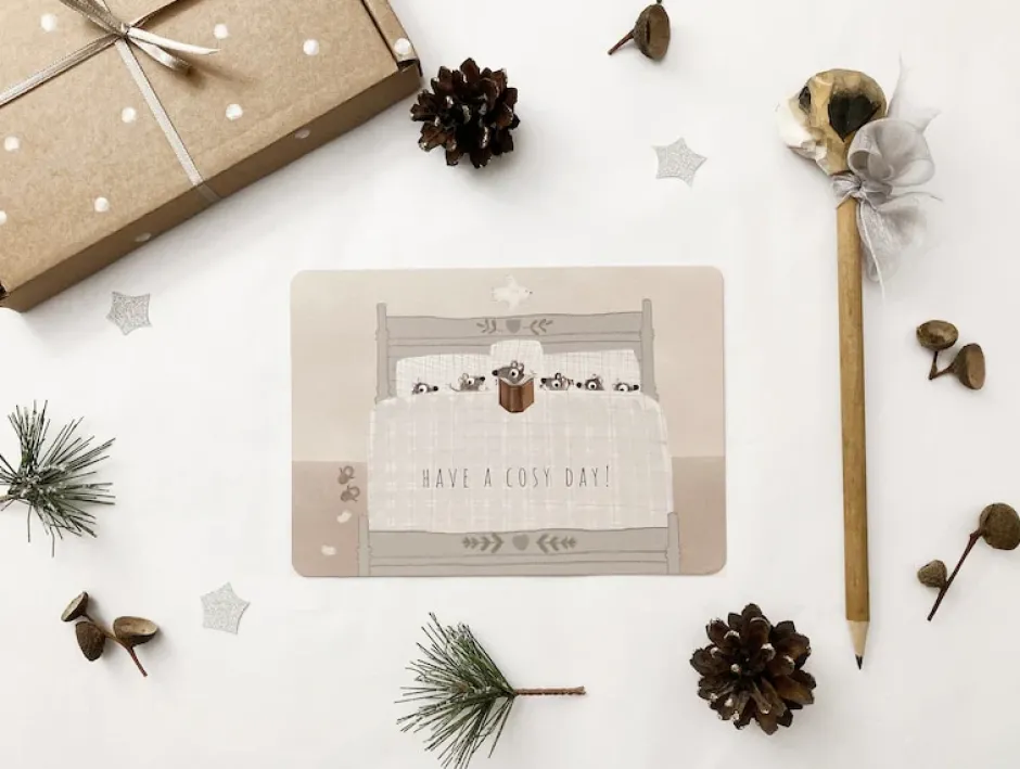 Cottontails Baby Cards|Postcard & Envelope – Mouse Family in Bed / Cosy Day