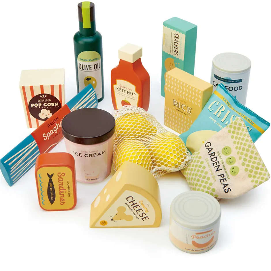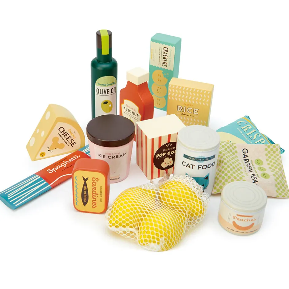Fabulous wooden play food grocery set from a small, ethical UK toy maker.