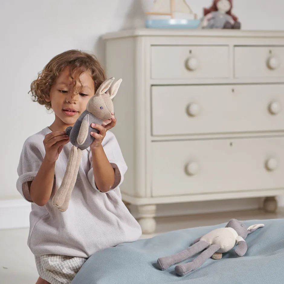 Gorgeous soft dangly bunnies crafted from soft organic cotton inside and out, so kind to even the most delicate skin. Choose from three different colours, all in natural gentle shades, and all with lovely long limbs for little hands to grasp.