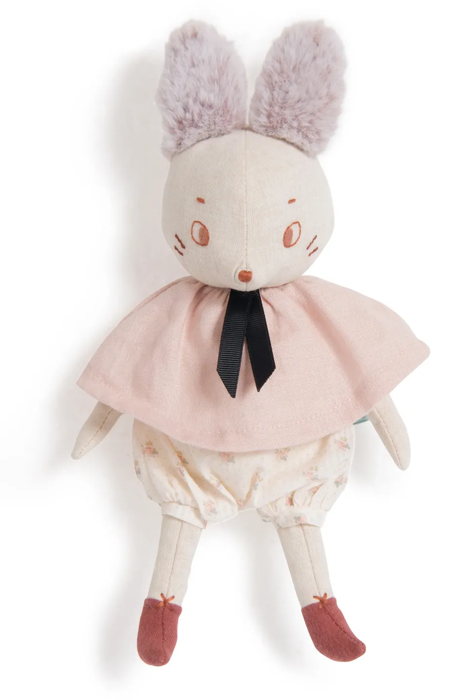 She wears ‘faded’ floral romper pants and a pink linen cape. Her ears and tail are super soft and fluffy.
