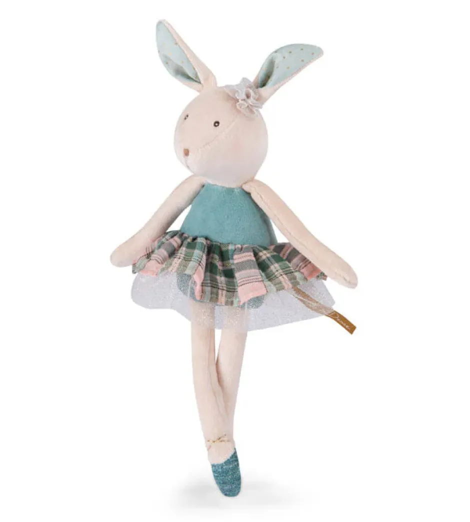 Lovely soft toy bunny with creamy velvet body, pretty embroidered face and sparkly dancing outfit