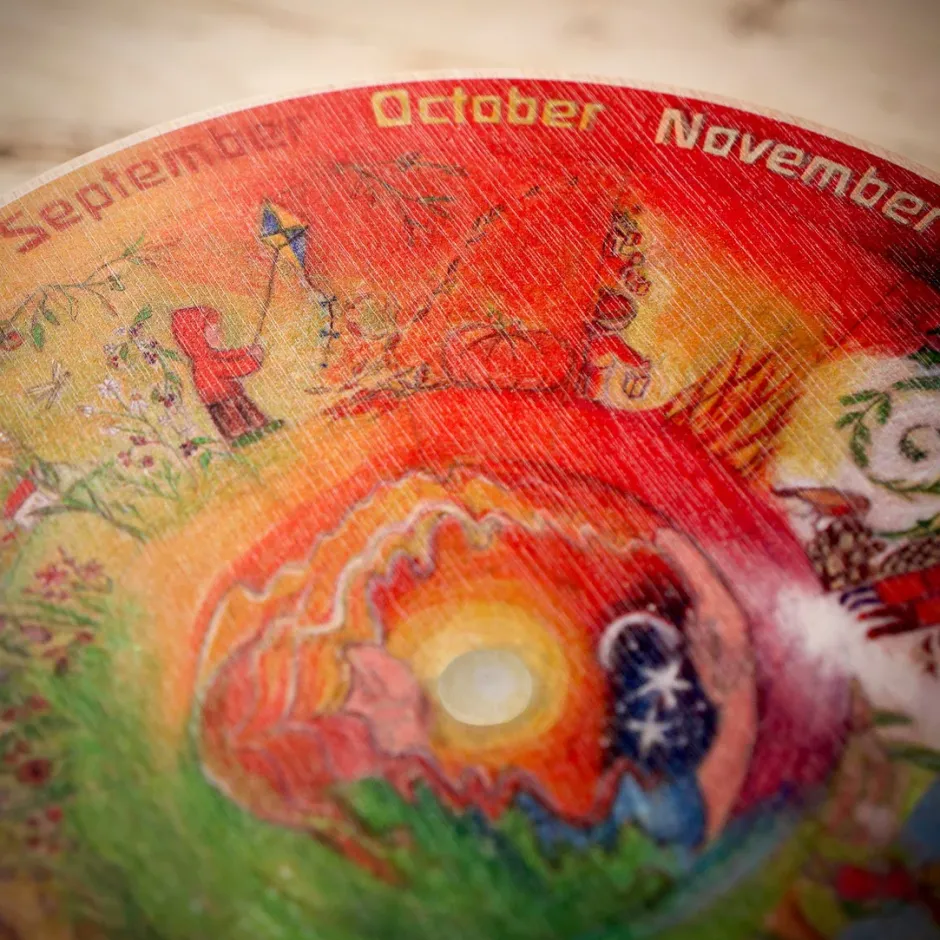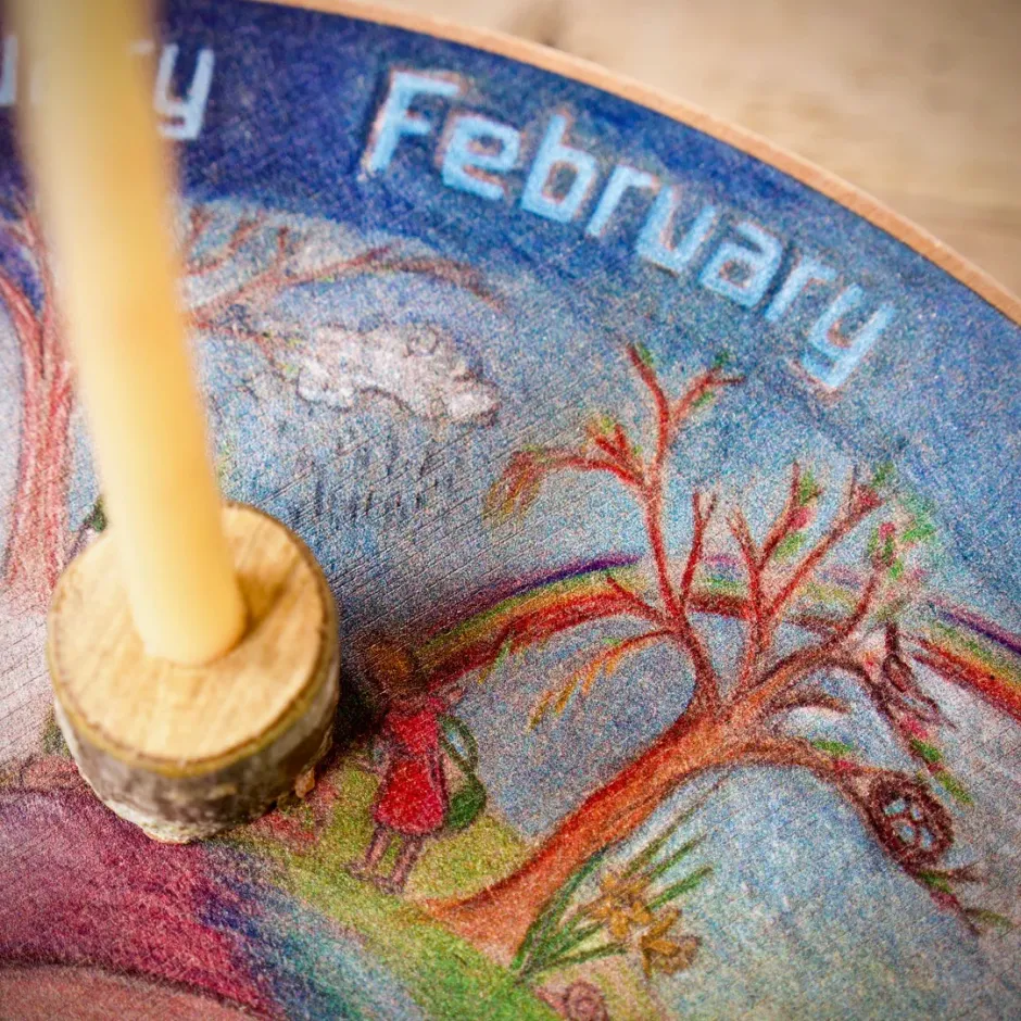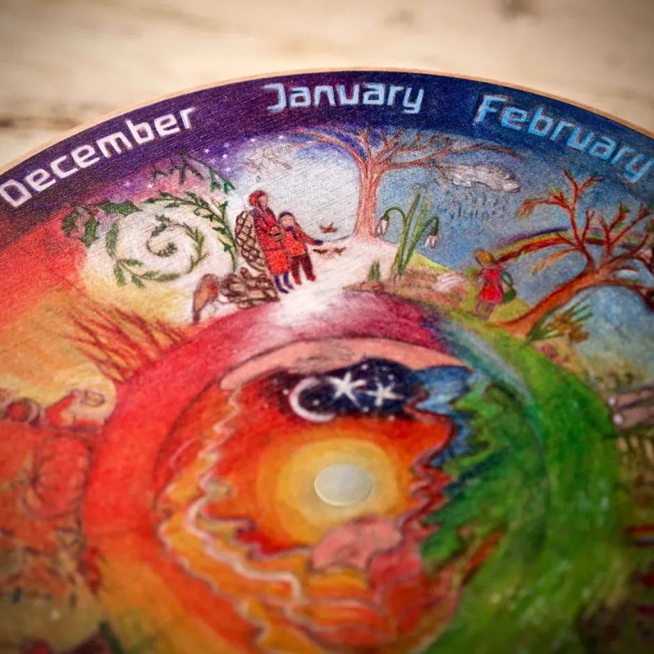 It can also be nice to interact with the wheel as the seasons pass, perhaps stepping a little figure or toy around the months.