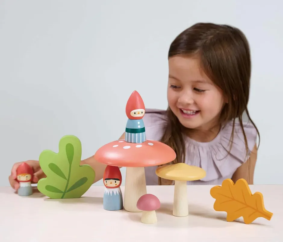 Lovely little wooden play set including three little gnomes, toadstools and leaves – all presented in a beautifully illustrated gift box.